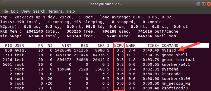 處理器通常被認(rèn)為是衡量系統(tǒng)速度的指標(biāo)。使用Linuxtop命令了解資源的使用情況。注意 MySQL 進(jìn)程及其所需的處理器使用百分比。